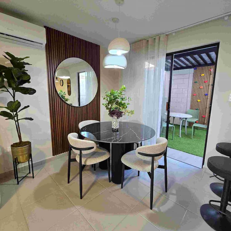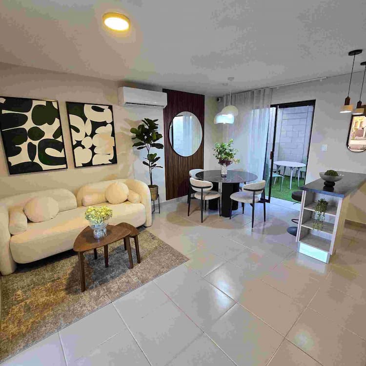 Casa habitación con 60 mts2, la cual cuenta en planta baja con: sala, comedor, cocina, medio baño, cochera para 2 autos, patio y área de servicio. En planta alta: dos recámaras, y un baño completo compartido.